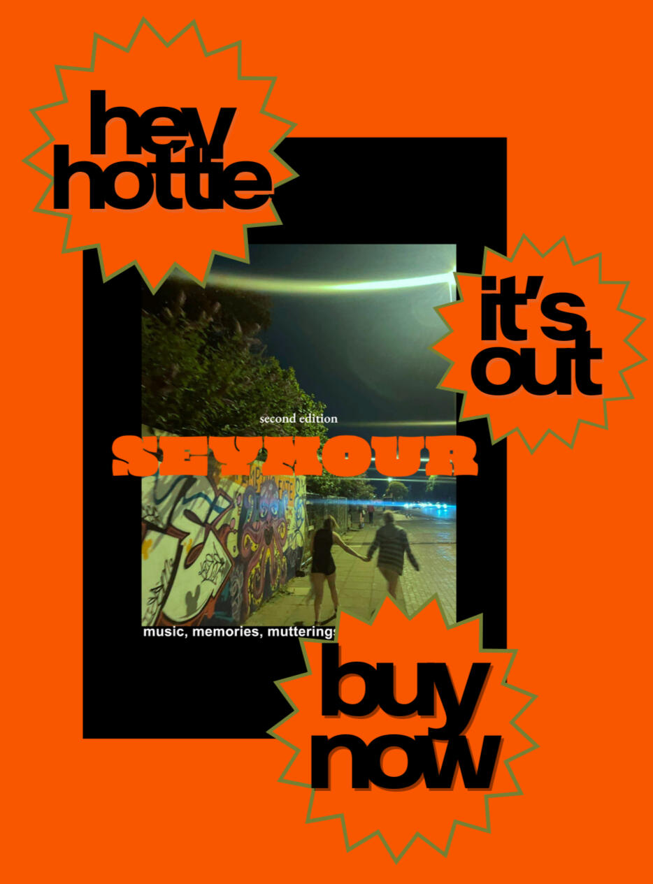 SUBMISSIONS OPEN FOR SEYMOUR 3 - GET INVOLVED.no theme, no limits. submit your art, poetry, words, photography, opinions, film, concepts and ideas to be in the next SEYMOUR. i can't wait to hear from you and welcome you into the SEYMOUR family. submit through email below, LOVE YA xx(closing 14.10.25)